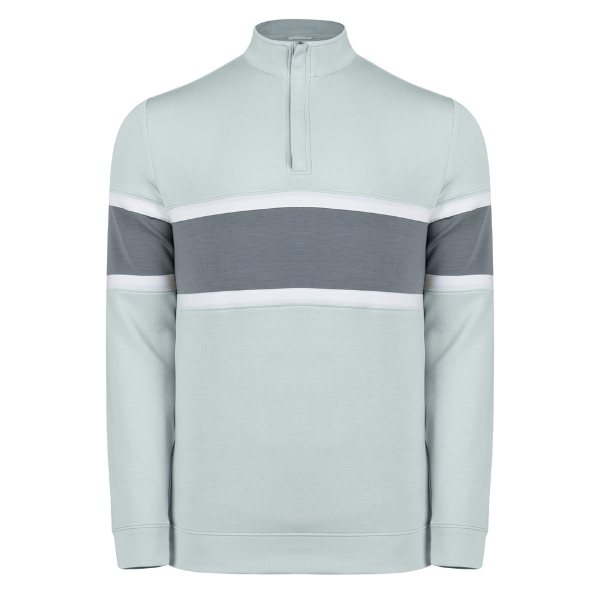 Bold and narrow stripes lend a self-assured look to the Men’s Owen Quarter-Zip Colorblock Pullover from Swannies Golf. Made of a premium soft modal/poly/spandex blend, it features a relaxed fit and stand-up collar with hidden zipper. Available in S-2XL in red with blue/green contrasting stripes or mint green with gray/white stripes.
