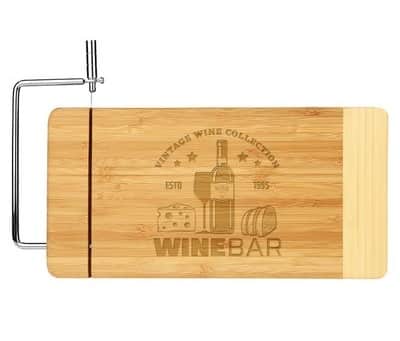Turn a useful kitchen piece into a brand reminder with the Bamboo Bar Cutting Board With Metal Cheese Cutter. Made from durable bamboo, it features a built-in metal cheese slicer that lifts open from one end and includes an extra wire for backup. Measuring 12×6 inches, it’s compact enough to mail but still large enough to make an impression.