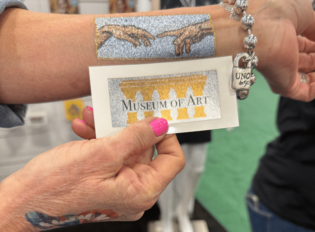 Halpin was also dazzled by California Tattoos’ newest offering: custom temporary tattoos that reveal a different design once you apply them. “It seemed really fun and would be great for a company rebrand, revealing the new logo,” Halpin says.