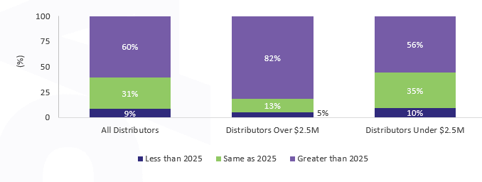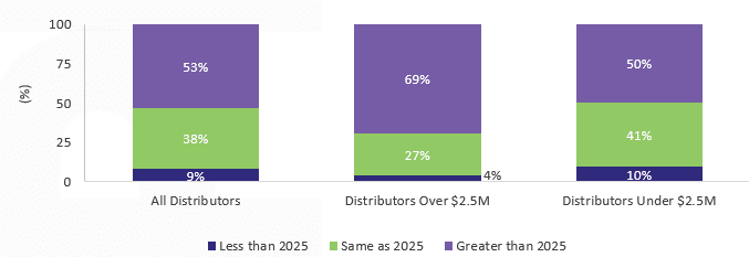 If you ask about profit, that optimism is tempered a bit more as the external pressures of 2025 are likely to continue into 2026. Only 53% of distributors expect profit in 2026, and only half of small distributors are feeling encouraged about profitability.