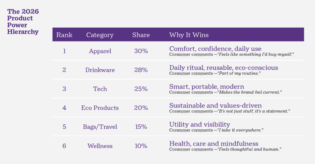 PPAI’s consumer study, Product Power 2026, conducted among more than 5,000 U.S. respondents, reveals a fundamental shift: People now associate branded merchandise with personal relevance, design appeal and emotional connection. That’s why the most successful brands are those that create merchandise people are proud to be seen with.