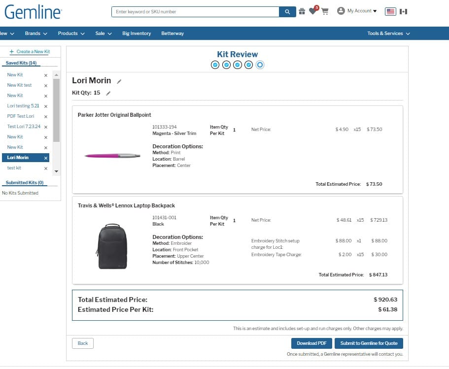 Gemline’s Kit Creator tool helps distributors build custom kits for their clients. The tool allows for customer-specific pricing, automatically defaults to the lowest minimum of all items in the kit and allows the user to submit the kit idea directly to Gemline for a formal quote or download it as a PDF to share with their clients.