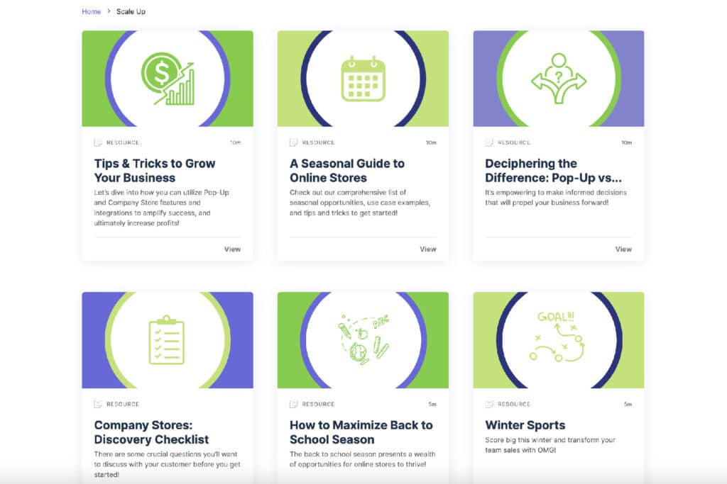 The OMG Academy is an online resource for OrderMyGear distributor clients to explore self-guided training on how to build and manage their OMG online stores. The training platform houses easy-to-follow guides and tutorials to familiarize distributors with OMG stores, train new team members and learn how to maximize their store’s success. Resources include video training, informative articles, certification opportunities and more.