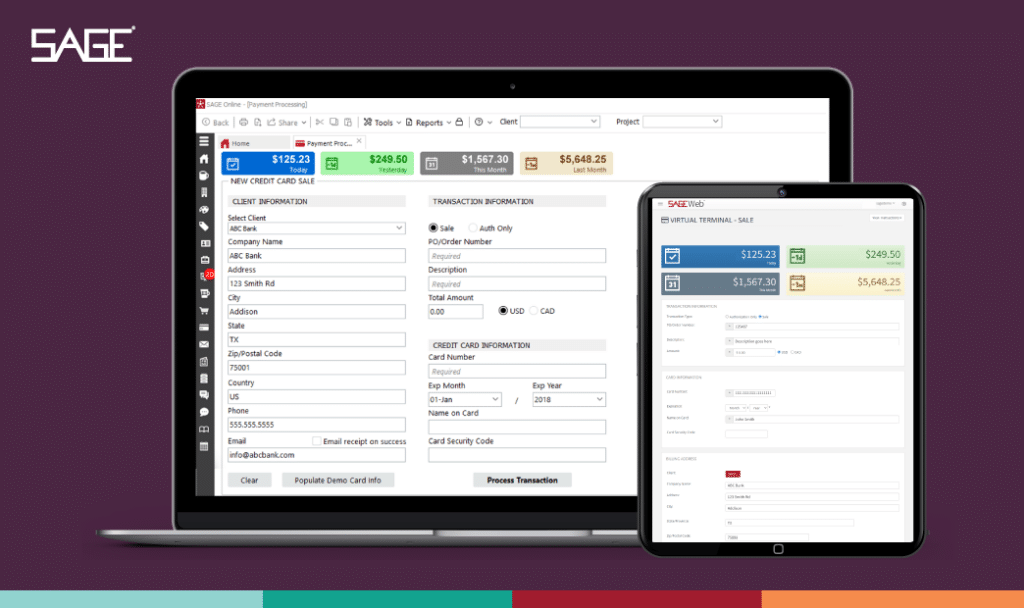 SAGE Payment Processing offers businesses a comprehensive and hassle-free payment processing solution at a competitive price. Users have the flexibility to swiftly handle credit and debit card transactions using SAGE’s virtual terminal application website or process cards directly within SAGE Online, SAGE Web, and SAGE Mobile – all without exiting the platform.